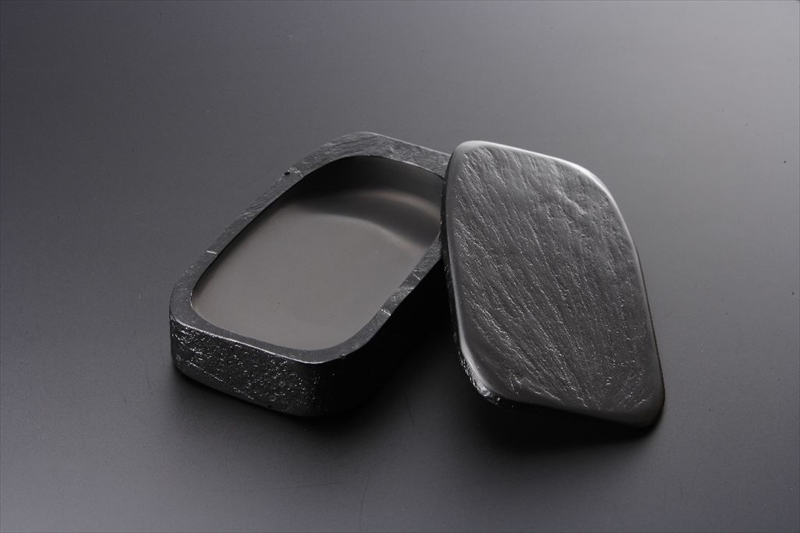 一枚の石から作られる蓋の付いた硯です。
