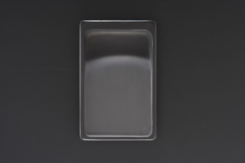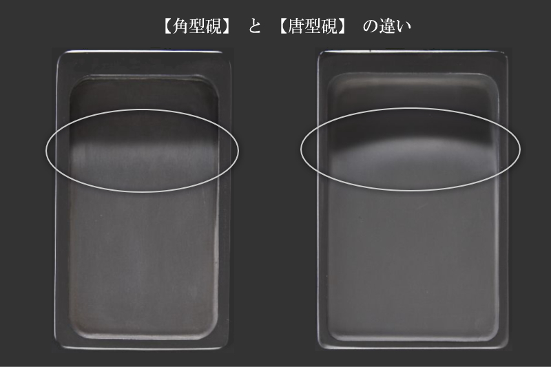 形状は角型硯と同じオーソドックスな四角い形の硯です。 丘(墨を磨る平らな部分)から海(墨を溜めておく部分)に向かう傾斜の始まり部分が、 横一直線になっている角型硯に比べ両端がゆるやかに斜めに彫られています。 USE SITUATION