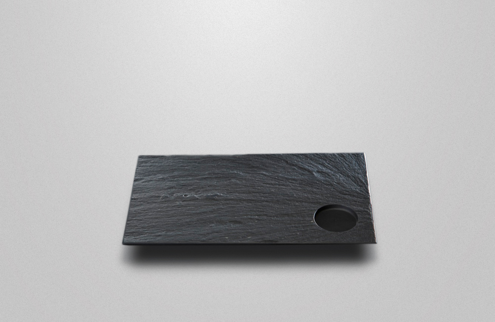 玄昌石を裁断した際に生まれる割肌をそのまま活かしたお皿は、世界に一つだけの宝モノです。
